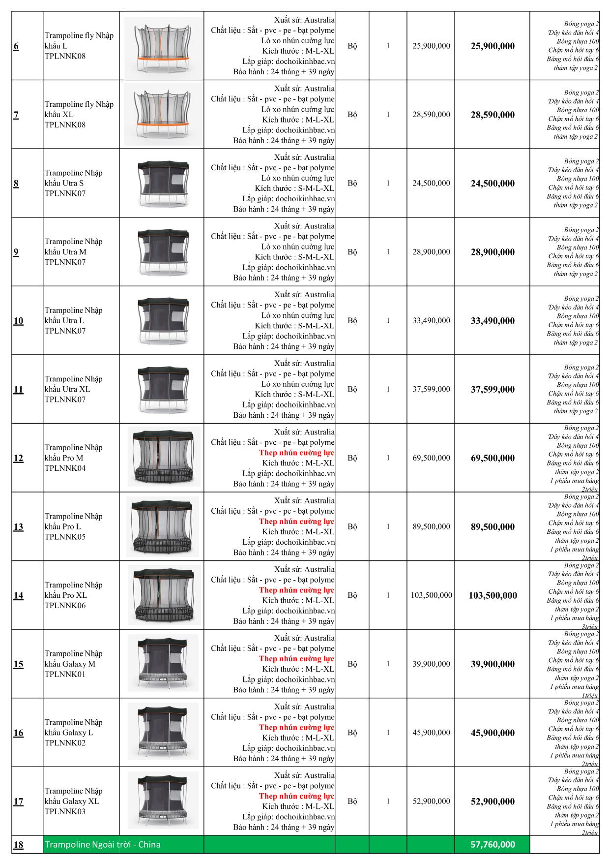 Trampoline nhập khẩu pro
