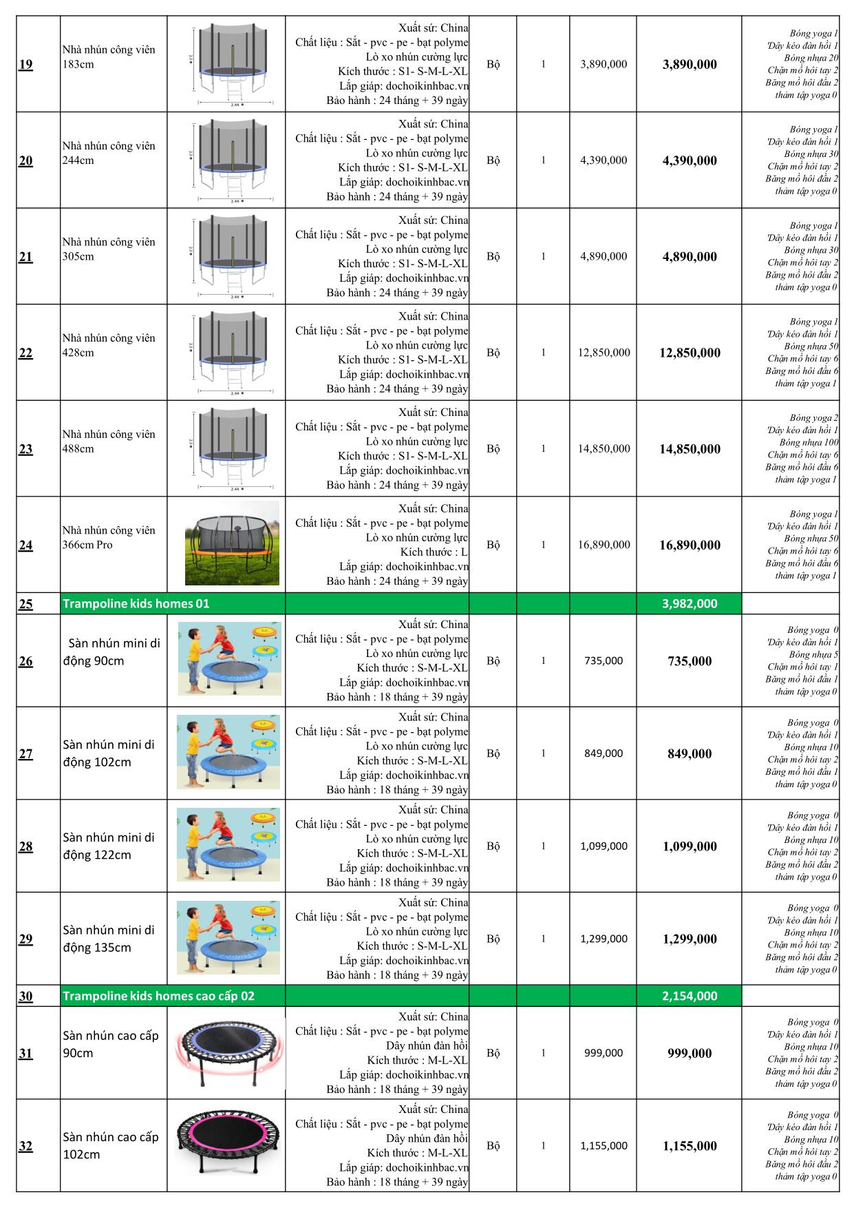 Báo giá trampoline di động