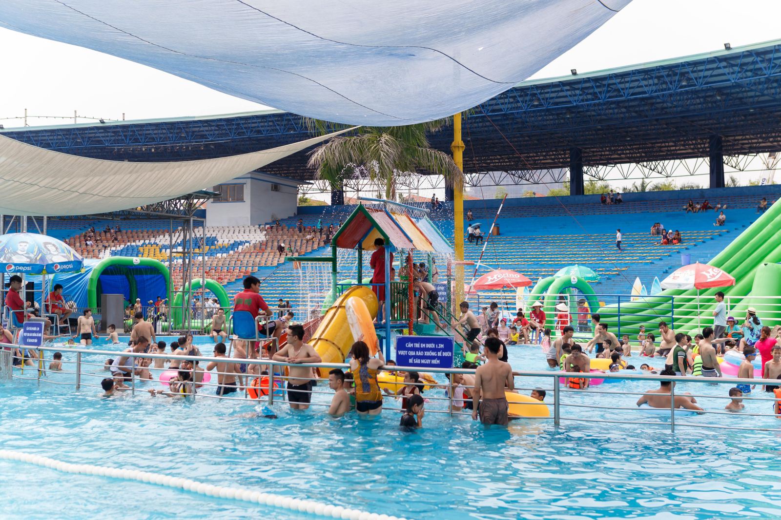 Ngoài công viên Mặt Trời ra thì công viên nước cũng là một điểm đến lý tưởng vào mùa hè mà bạn nên một lần ghé tới. Tại khu vui chơi trẻ em có hồ bơi này sở hữu diện tích khá rộng lớn và được chia thành nhiều khu vực khác nhau như: các đường ống trượt, bể bơi tạo sóng nhân tạo, bể lặn sâu, các trò chơi dưới nước và khu vui chơi trẻ em khác…