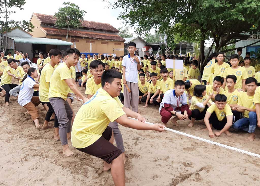 Thanh, thiếu niên tham gia các trò chơi vận động trong Khóa tu mùa hè