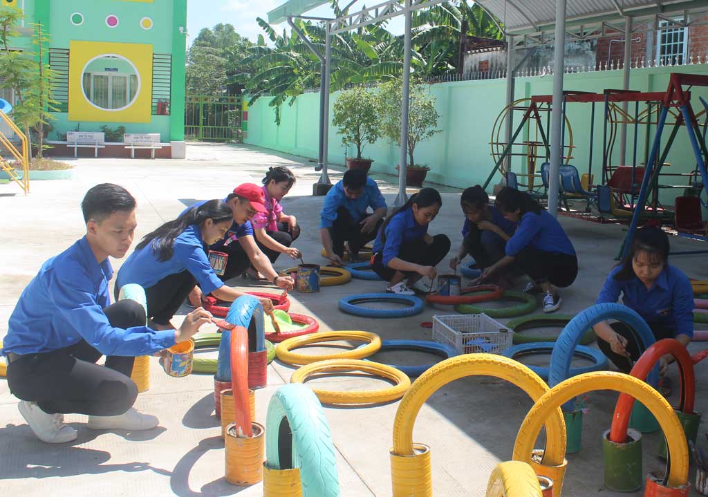 Nếu trẻ em thành thị có nhiều điểm vui chơi thì trẻ em nông thôn, nhất là vùng sâu, vùng xa rất “khát” sân chơi hè. Với sự khéo léo, sáng tạo, Đoàn Thanh niên các cấp “hô biến” những chiếc vỏ xe cũ thành đồ chơi hữu ích, tạo sân chơi lành mạnh cho trẻ. Đoàn xã Long Cang, huyện Cần Đước vận động xã hội hóa trên 100 chiếc vỏ xe cũ và gần 200 vỏ hộp sữa cũ, sắt vụn,... để chế tạo thành các con thú ngộ nghĩnh và những chiếc xích đu, các khóm hoa đầy màu sắc. Để làm ra những món đồ chơi khác nhau, đoàn viên thanh niên phải rất tỉ mỉ, cẩn thận và dành nhiều thời gian.